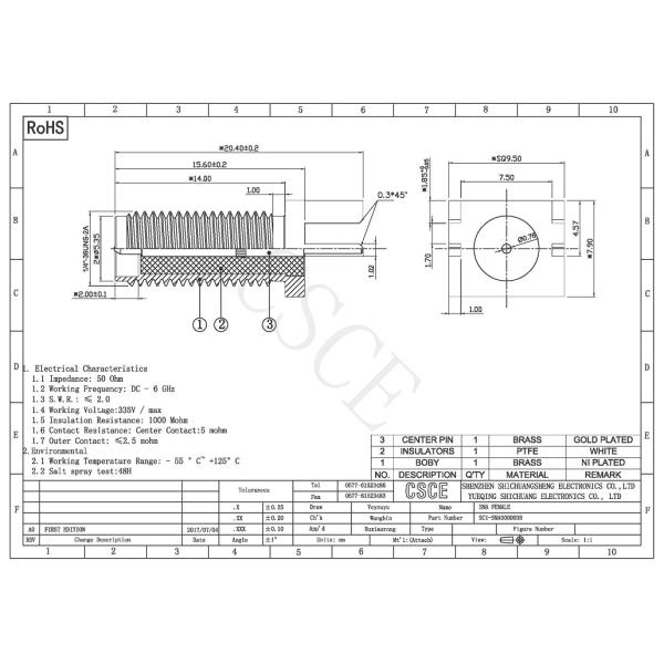 | SC1-SMA0000038 SMA Female 50 ohm Working Frequency: DC - 6 GHz |